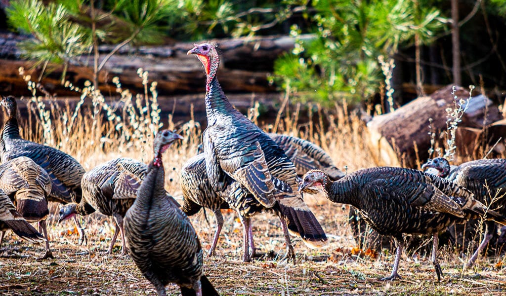 Are they birds? Yes. But do they fly? Well, sort of and only when convinced. Turkeys are a common sight in Mariposa County’s Gold Country year-round, but the winter is when they’re seen most frequently and in their greatest splendor. By winter, the season’s young have grown into young adults and the males of all ages have gone from scrawny ground-based birds to big, puffy flock leaders ready to show off their tail feathers and impress their potential mates to repeat the cycle. If you’re staying in the gold country you’re likely to see one or two flocks of turkeys meandering their way across the pastures. If you’re driving keep your speeds low, because you might encounter a Mariposa County traffic jam caused by a wayward flock of turkeys wandering across the road.