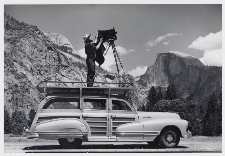 Ansel on Top of Station Wagon, Yosemite, 1946