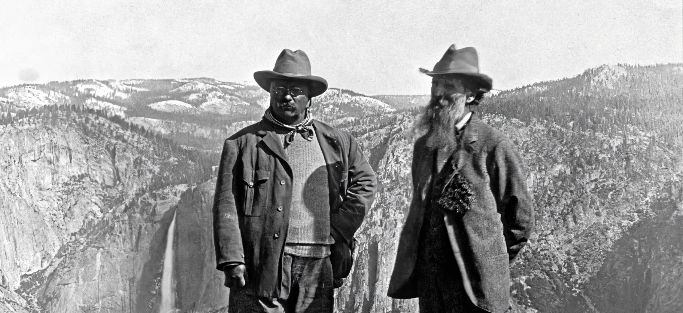 One of the most well-known photographs of John Muir is the one taken atop Glacier Point with President Theodore Roosevelt in 1903. While it’s not possible to stand in the same spot due to safety concerns (and please never climb over fences in the park!) you can see the same breathtaking views of the high Sierra Nevada watershed that Muir showed to Roosevelt on that trip, convincing him to expand Yosemite National Park into what it is today.
