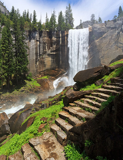 Explore easy trails such as Lower Yosemite Falls and Bridalveil Fall if you are looking for a short walk that will bring you close to these wonders. Both trails a fully paved, pet-friendly, and wheel-chair accessible, so they truly are perfect for anyone. If you are looking for more of an adventure, seek out the Mist Trail.