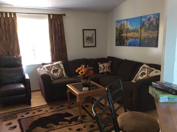 Tenaya’s Retreat is tucked away in Midpines directly on the route to Yosemite Valley, about 20 miles from Yosemite Park gate! We welcome you to our Family Retreat! When you arrive at the home you will immediately feel welcomed by the peacefulness of the surroundings. There is a large living room, large fully stocked kitchen, outdoor dining and a BBQ. The town of Mariposa is only 7 miles away, where there is a large grocery store, gas stations, boutique shopping, and many excellent restaurants.