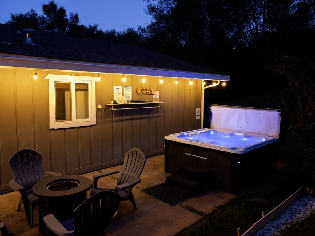 Set on a private half-acre surrounded by oak-covered hills, this home offers a peaceful retreat right in the heart of town. Take in the views day or night from the expansive pool, or unwind in the hot tub on the back patio—perfect for stargazing under the night sky. The house has three lovely bedrooms and two bathrooms all with luxe hotel quality linens. The living room and game room are ideal for relaxing after a day spent exploring Yosemite. The kitchen is fully stocked with everything the trips chef and there are both indoor and outdoor dining areas.