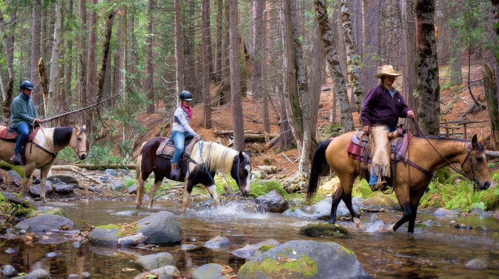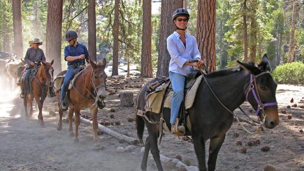 Yosemite Trails offers three signature rides: Big Creek, Vista Pass, and Grizzly Giant. The perfect intro for first-timers, Big Creek is a one-hour trail ride between stands of towering sugar pines, across burbling mountain streams and through lush mountain meadows. Their experienced guides will show you how to horseback ride Yosemite right!