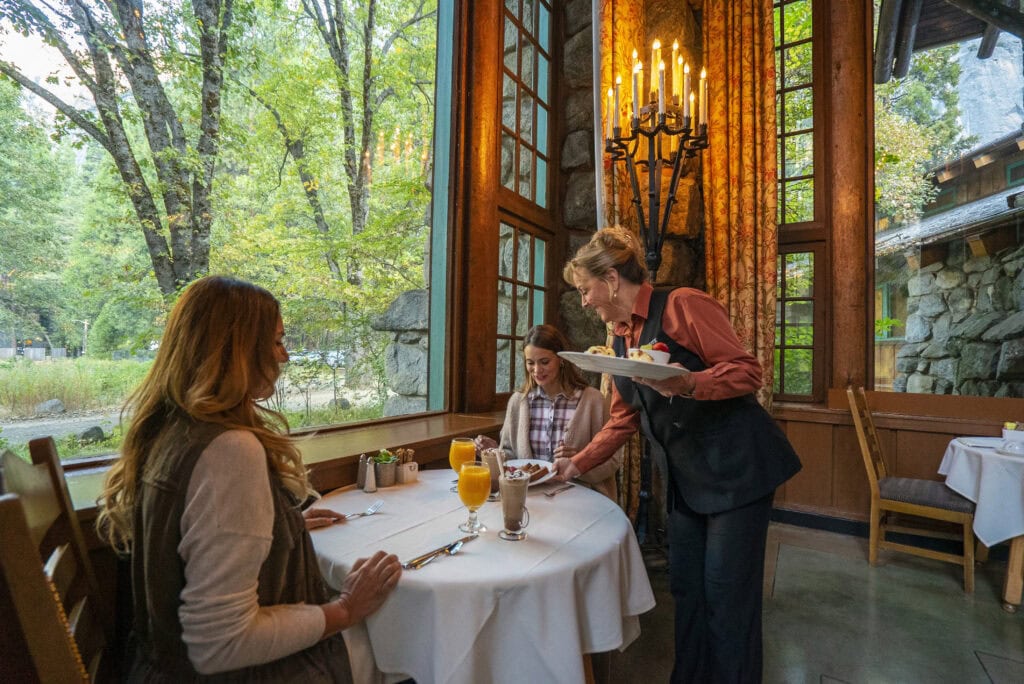 Having an elegant meal that’s just downstairs from your well-appointed room makes for a grand entrance and a stylish clink of cocktail glasses. The historic Ahwahnee Hotel offers this unbeatable pairing with their famed Ahwahnee Dining Room. The setting is timeless as vaulted-ceilings, exposed beams and picture windows create a winter masterpiece with Yosemite Valley just outside.