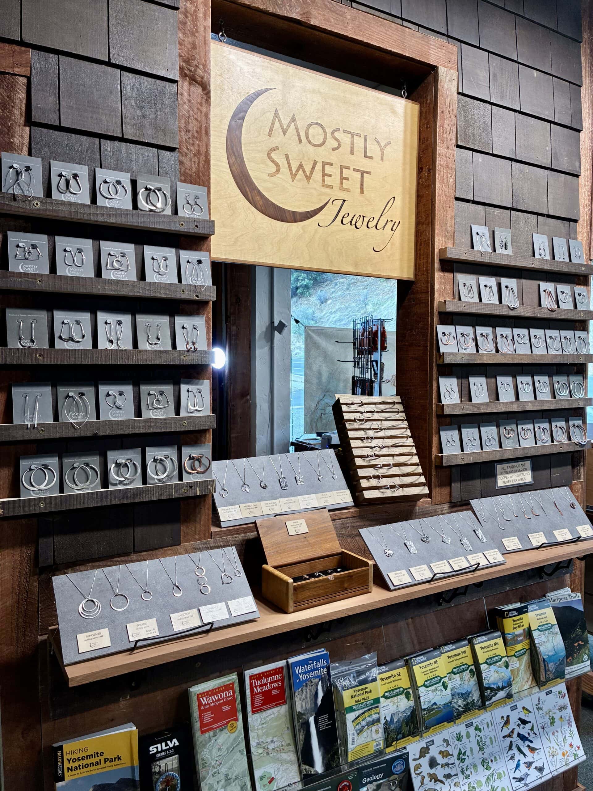 Enjoy handmade hoop earrings, crescent moon necklaces, Yosemite-inspired nature designs, and minimalist jewelry essentials in Mariposa, Ca. Each piece is carefully handcrafted from precious metals, designed for those who will love it. Words often fall short of expressing the joy felt when artistic vision transforms into a solid precious metal piece. This satisfaction is only surpassed by seeing someone wearing their Mostly Sweet Jewelry with love—day after day, never wanting to take it off.
